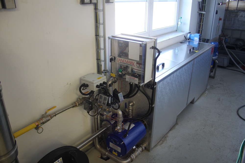 Nerezová nádrž ohřevu má vnější rozměr (d x š x v) 1890 x 500 x 800 mm a je zaizolována ALP izolací. V nádrži je vložen nerezový výměník (spaliny-lázeň). Na výměníku je osazen plynový hořák a spalinový ventilátor. Instalovaný výkon hořáku je 45 kW.